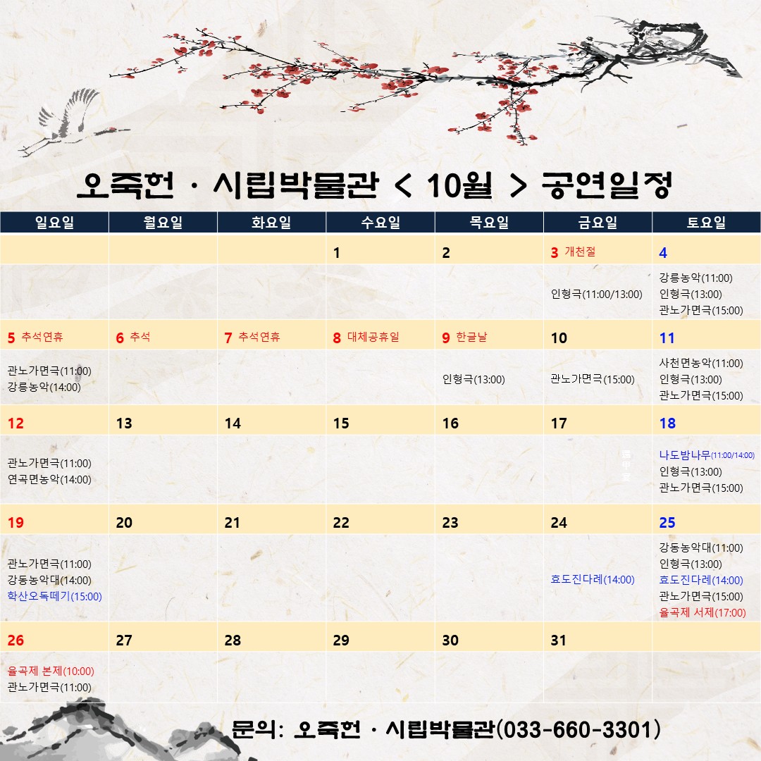 제목 | 오죽헌 10월 공연 일정(변경) |