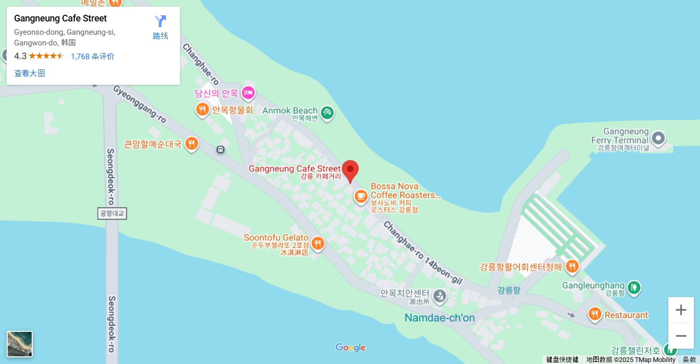 江陵咖啡街是真正能够感受咖啡之城 "江陵" 魅力的地方。沿着安木海边, 咖啡馆鳞次栉比。从烘焙咖啡馆到咖啡烘焙工坊, 每家咖啡馆都有独特的风味与个性。游客可以在这里品尝各具特色的咖啡与丰富多样的甜点。