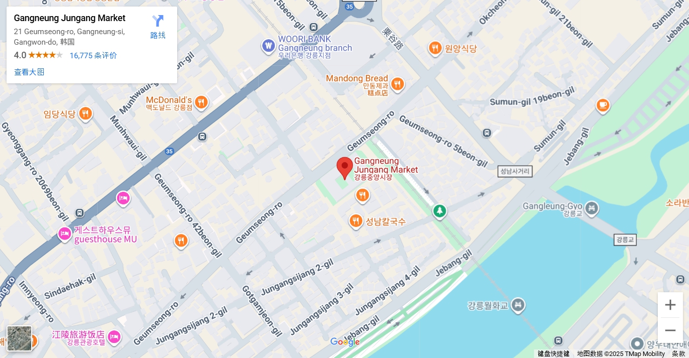 江陵中央市场本身就是一处著名景点。商贩们充满活力的叫卖声, 熙熙攘攘的人群, 以及香喷喷的油炸味, 让人驻足。边逛市场边品尝的小吃让江陵之旅别有一番风趣。