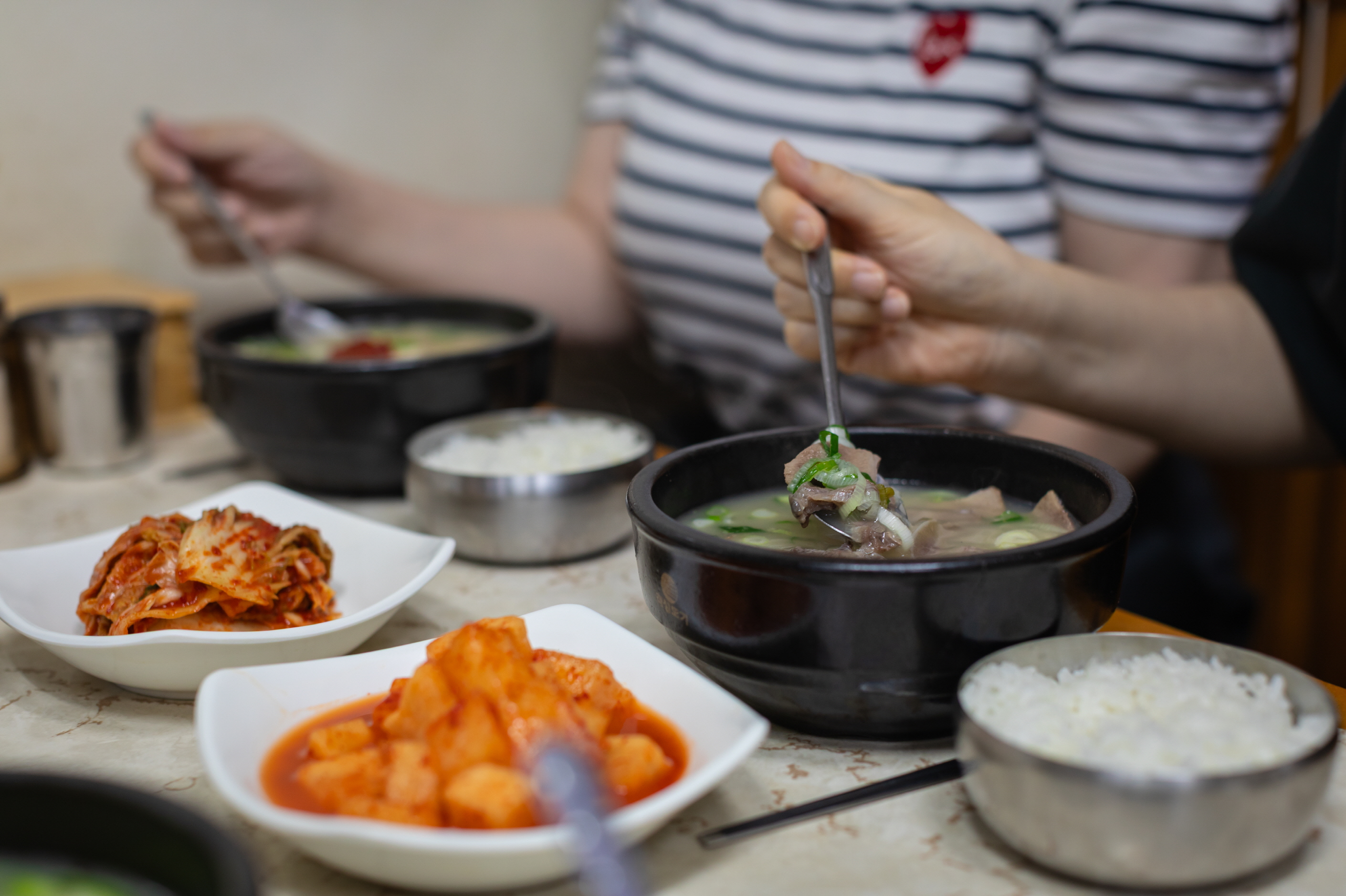 Một món ăn không thể thiếu trong chuyến du lịch Gangneung chính là gukbap. Đi sâu vào ngõ chợ, các quán gukbap mang dấu ấn thời gian nằm san sát nhau để giữ chân du khách. Món gukbap ở đây không chỉ đơn thuần là một món ăn mà còn là sự an ủi đầy ấm áp chứa đựng cuộc sống và ký ức của con người nơi đây.