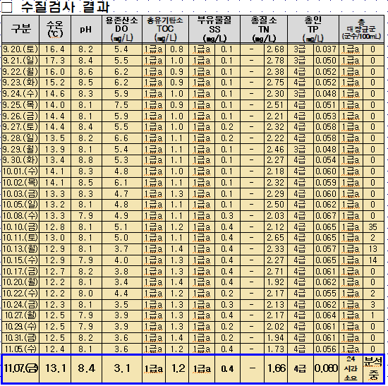 2025-11-07. 10:00 채수하여 검사한