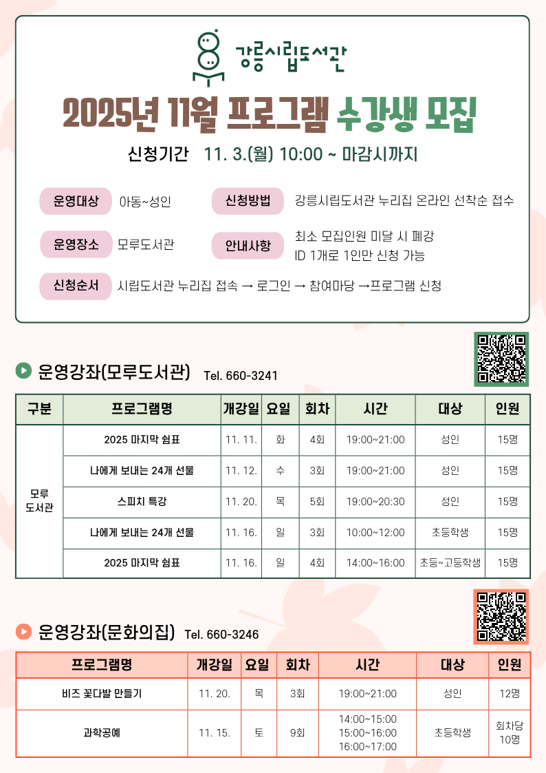 | 제목 | 11월 모루도서관 프로그램 수강생모집 |