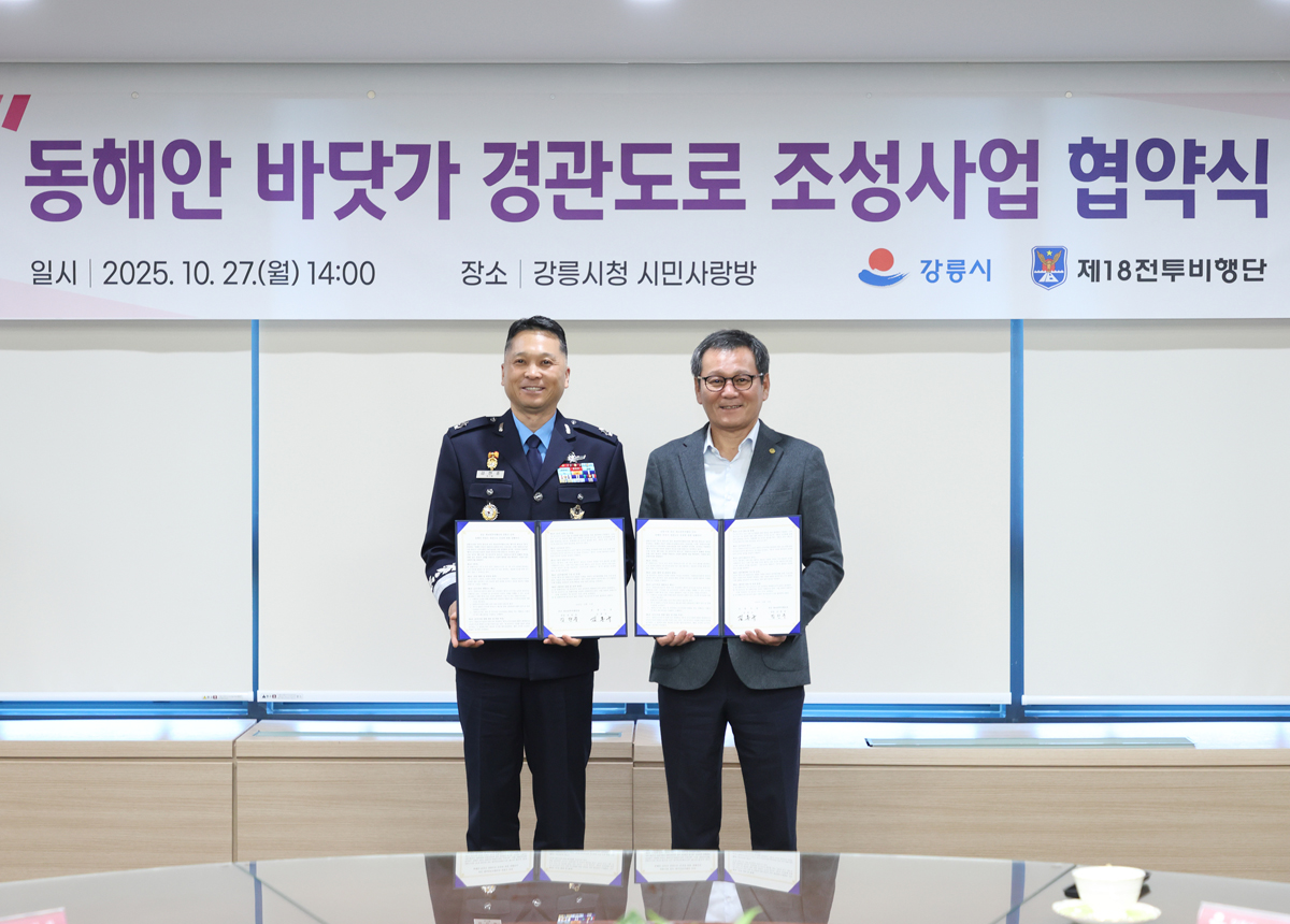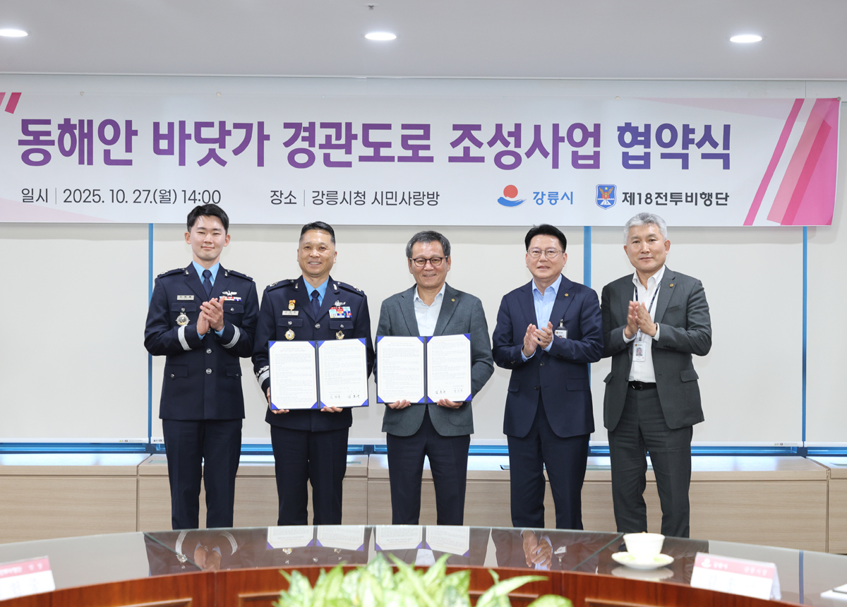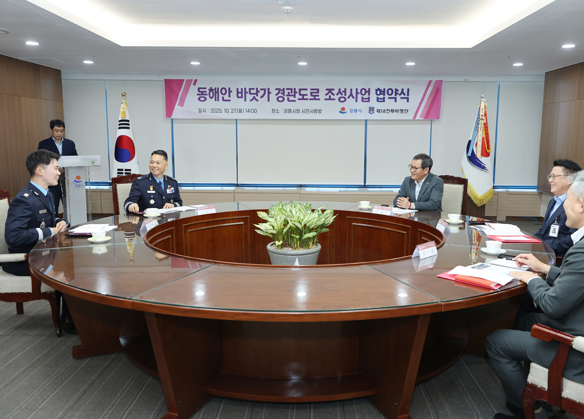 작성일 2025.10.27, 조회수 59 동해안 바닷가 경관도로(남항진~안인) 조성사업 업무협약 사진 확대보기 사진 확대보기 사진 확대보기 사진 확대보기 사진 확대보기 이전 이미지 보기 다음 이미지 보기 이전 썸네일 보기 다음 썸네일 보기 김홍규 시장은 27일 오후 8층 시민사랑방에서 열린 동해안 바닷가 경관도로(남항진~안인) 조성사업 업무협약식에 참석했다. 목록
