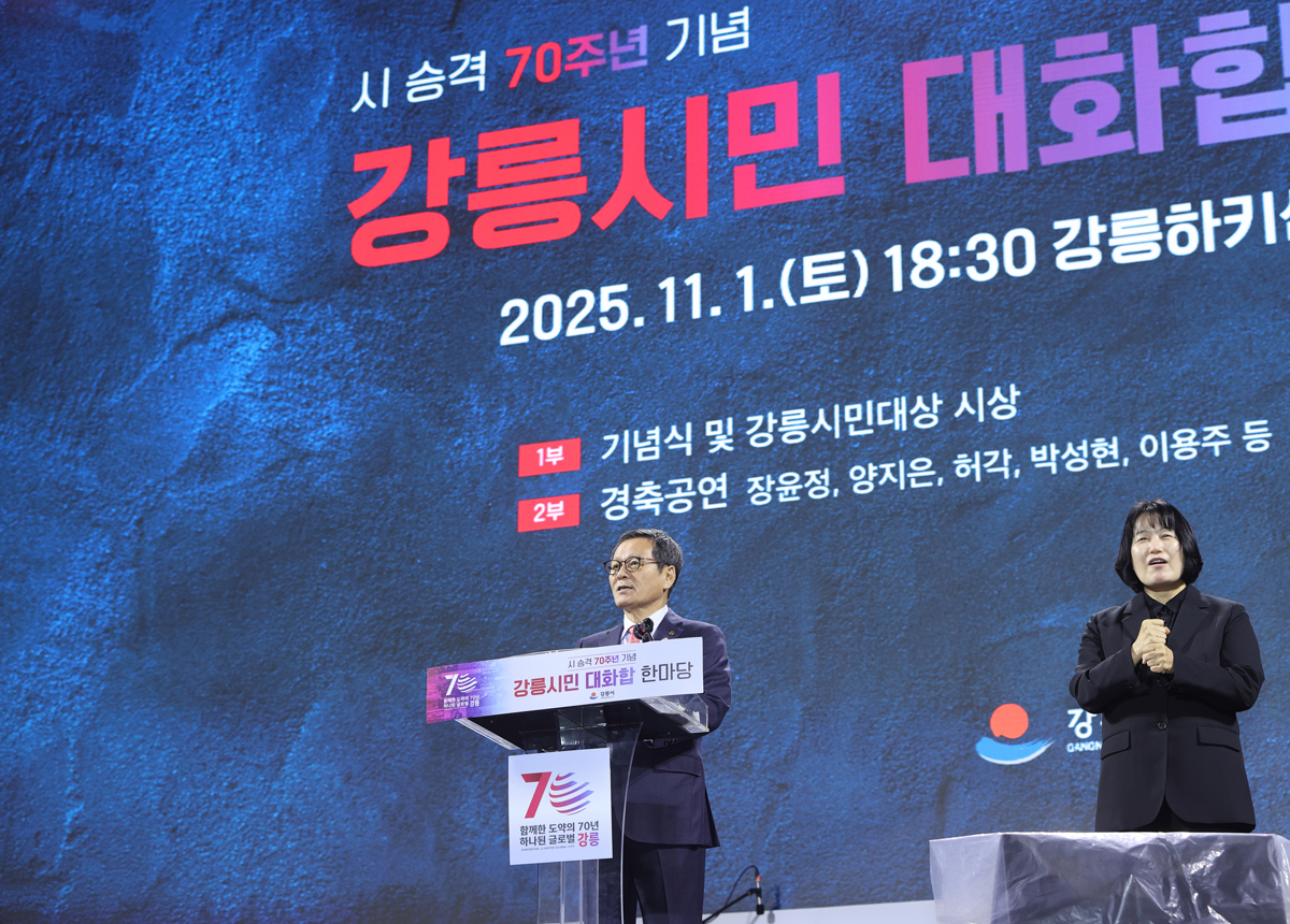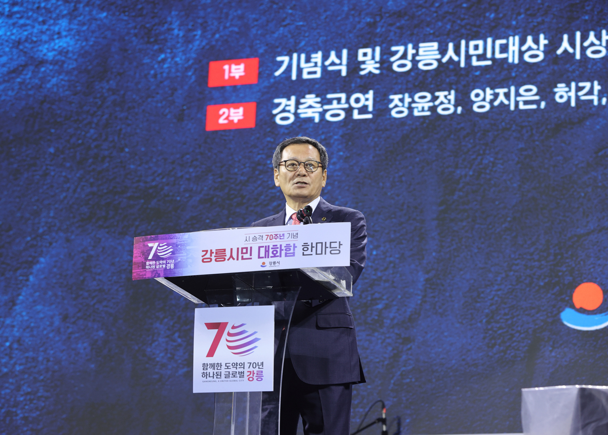 작성일 2025.11.01, 조회수 31 시 승격 70주년 기념 강릉시민 대화합 한마당 기념식 사진 확대보기 사진 확대보기 사진 확대보기 사진 확대보기 사진 확대보기 사진 확대보기 사진 확대보기 사진 확대보기 사진 확대보기 사진 확대보기 이전 이미지 보기 다음 이미지 보기 이전 썸네일 보기 다음 썸네일 보기 김홍규 시장은 1일 오후 강릉하키센터 야외광장에서 열린 시 승격 70주년 기념 강릉시민 대화합 한마당 기념식에 참석했다. 목록