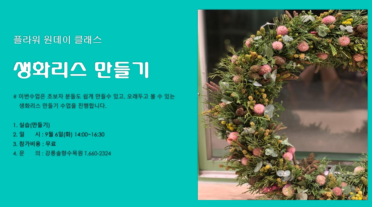 | 제목 | ★ 9월 플라워 원데이 클래스(리스 만들기)★(마감) |