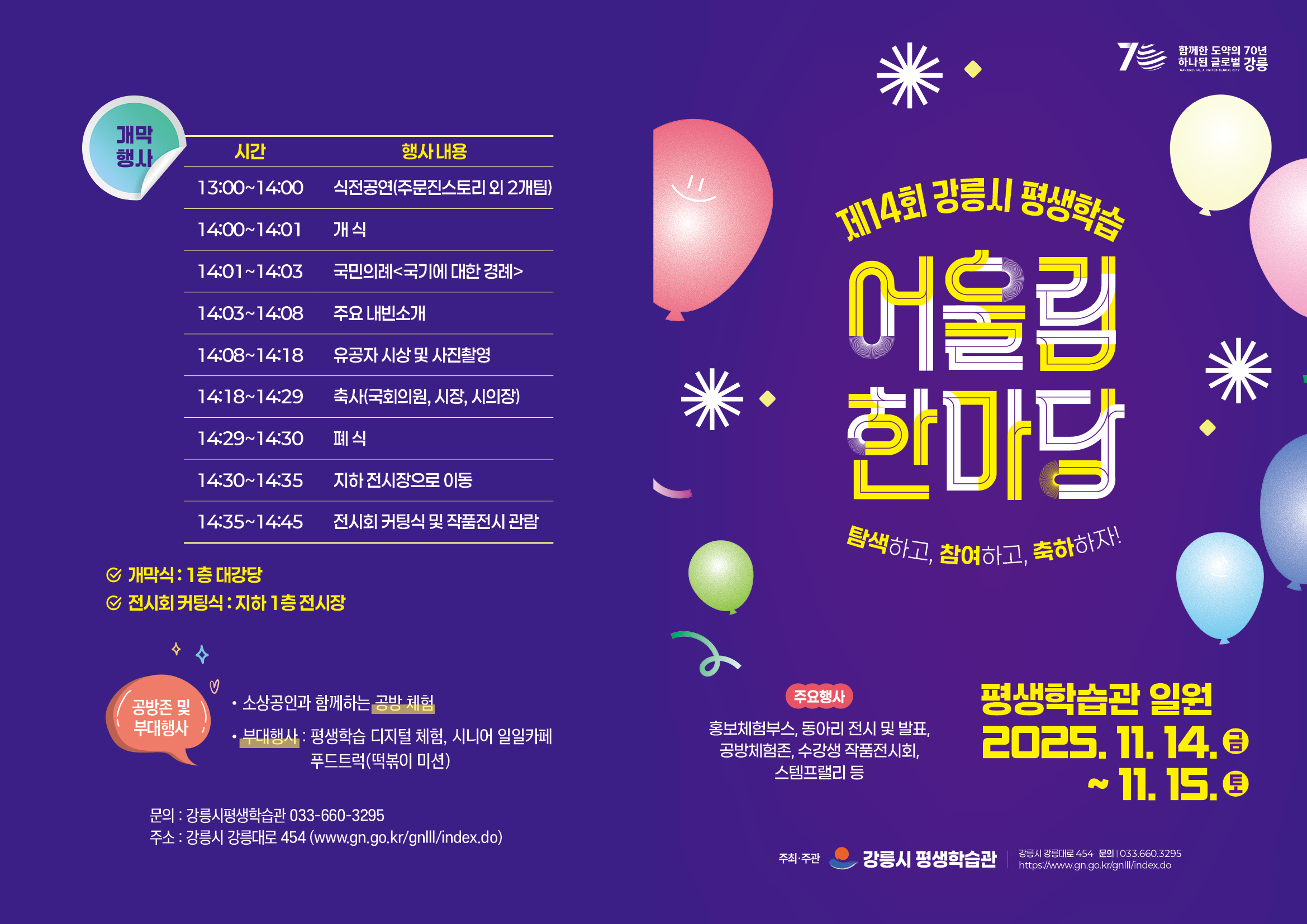 | 제목 | 제14회 강릉시 평생학습 어울림 한마당 개최 안내 |
