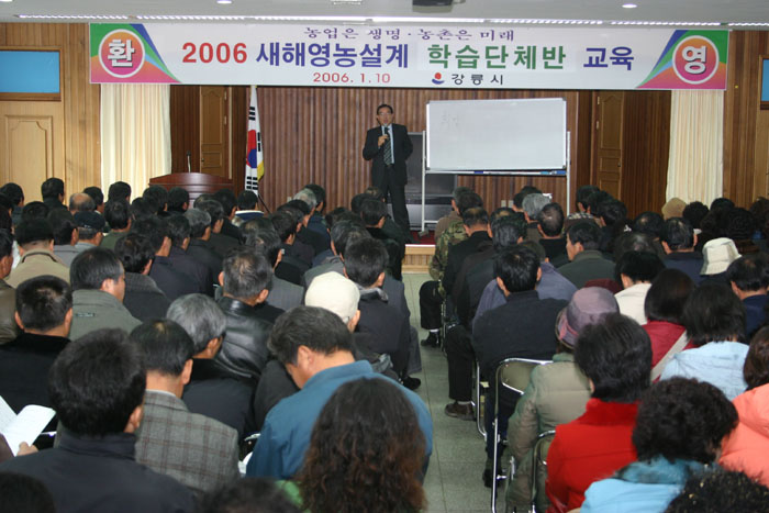 | 내용 | 2006년 새해영농 설계교육이 1월10일 농업기술센터 교육장에서 심기섭시장과 농업인 300여명이 참석한 가운데 개강식을 가졌다. 이날 개강식에서 심기섭시장은 인사말을 통해 올해는 영농소득을 올리는 농사로 새해설계를 당부하였다. 또한 성진근충북대 농업경제학교수는 희망이 넘치는 농촌을 위하여 농업인들이 미래를 보는 농사에 대한 특강을 했다. 새해영농 설계교육은 1월24일까지 읍 면 동에서 실시된다. |
